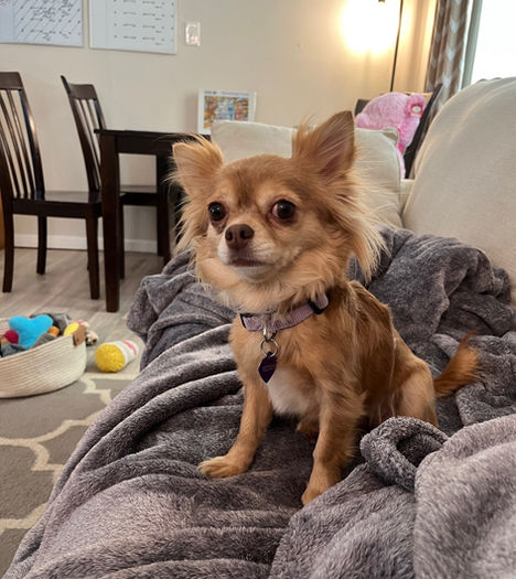 Victory, weighing around 5.5 pounds, just joined our program in November 2024, and she’s already made a big impression. Her personality is truly one in a million. She’s a one-owner dog, as this breed often can be, and lives to be my full-time companion. Victory loves to paw boop my nose when I’m not giving her enough attention and can nap absolutely anywhere. She enjoys going on walks, is playful yet calm, and loves other chihuahuas. While she tolerates the presence of strangers, her love language is definitely Katie Polk.